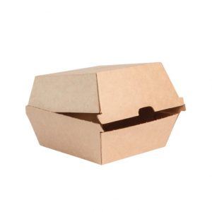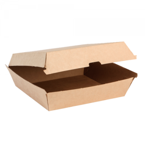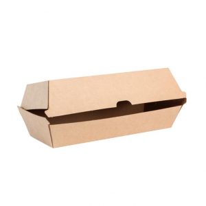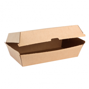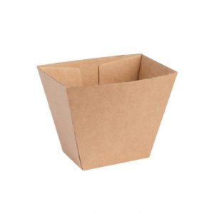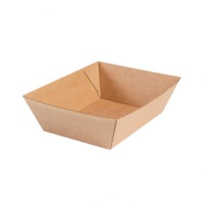 This food tray is made from brown corrugated kraft board. It is a sturdy and attractive way to serve take away food that doesn’t require a cover.
