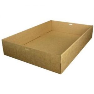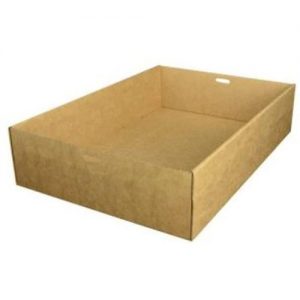 This food tray is made from brown corrugated kraft board. It is a sturdy and attractive way to serve take away food that doesn’t require a cover.